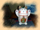 大きな箱の中に幾重にも包まれて、その中に片手ではなく両手を挙げた珍しい招き猫が居ました。