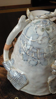 | くねくね花器はお嫁入りしました | 灯りは粉引きです。ちょっと穴が小さかったかも? | |