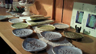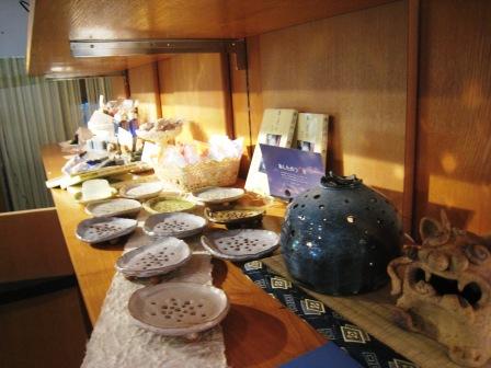 | 向かって左が風萩工房のコーナー | 人気の高かった手びねりの石鹸皿たち | |