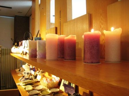 | ブティック「ITOUYA」さんの2階が会場 | キャンドルとステンドグラスのオーナメントのコラボ | ||