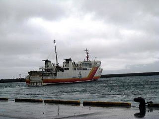 | これが乗船した東日本フェリー 約2時間の航路 翌日は波が高く、案の定欠航になってしまい 私は滑り込みセーフの島入りを果たす! |