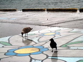 島にはそれは沢山の海鳥が… 島人よりこの鳥たちが支配しているような気さえする 港で逃げる様子もなく堂々と遊ぶ(?)海鳥 |