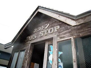 | 港に着くと今回の宿のオーナーが出迎えてくれた 同宿の方一人と 島の最北端のスコトン岬に向かう 場所は船泊スコトン星平…不思議な名前 スコトン岬は日本最北限の岬だという 画像はバスの停留所…何もない強い風の吹く岬 |