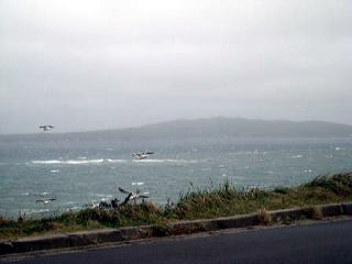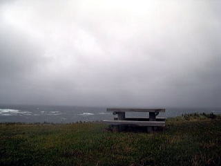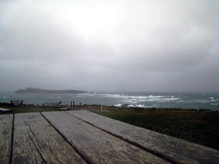 | この日は大荒れで、雨はさほどではなかったのに 風は想像を超えた強さで、私の小さな体に 歩行が困難なほど体当たりしてきました そんな天候に、無理矢理ひとりスコトン岬まで出かけた私 当然誰ひとり姿はありません 向こうに見えるのはトド島 |