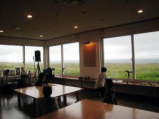 礼文の北のはずれの岬から 島の南部分が見えます 誰ひとり居ない場所で海鳥だけが激しく 風と戯れて(?)居ました |