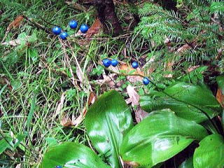 | とっても綺麗なブルーの実 | 名も知らぬ花ですが、私に似て可憐?? (ハナイカリだそうです) |
