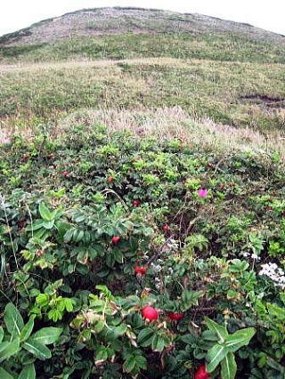 | 花の浮島と言われる礼文も この時期にはあまり花が期待できない それでもぽつぽつと秋の花 はまなすの赤い花が力強く咲いていました 花の時期はきっと見事なんだろうな…と 想像で楽しむしかないのは、少し寂しい |