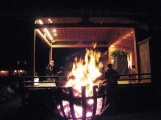 かがり火に照らし出された舞台は幻想的で、終演の際、挨拶のため面をはずした役者の方々の顔は、一様に素朴な村人の顔、顔、顔でした