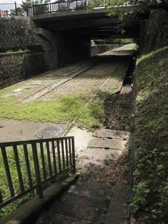 | 昔の賑わいが嘘のように、ただただ沈黙の場所 | レールは疎水に向かって伸び…そこで消える | |