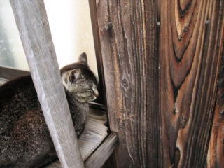 | 綺麗な水の流れのほっとスペース | 微動だにしない猫…こんな狭い場所でお昼寝? | |