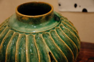 | 唯一赤を使った作品 花活けに挿したカラスウリとよくマッチしていました |