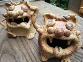 はじめて手ほどきを受けて作ったものと アレンジして作り上げた酔いどれシーサー |