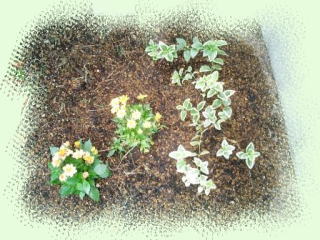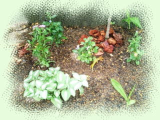 砂利や土を入れ、山野草や宿根草を植えました
