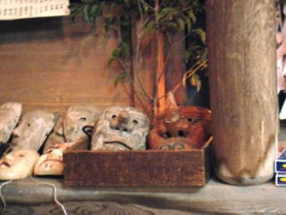 | 舞につけられる面の数々 | 舞人は全て村人の面々 | 湯切りの様子(詳しくはスライドショーで) |
