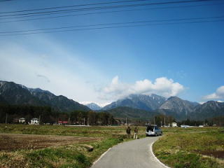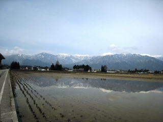 オリンピックロードを走っていたとき 白鳥が飛来する様を見られるかも?と 立ち寄ったスポットです 残念ながら、その姿は見られませんでしたが 水田に写るアルプスの山々の なんて綺麗なこと!! |