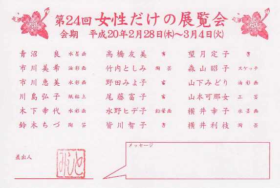 日時 08.2,28(杢)〜3.4(火) 10:00〜18;00(最終日のみ16:00)