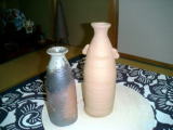 奥の花瓶と湯呑…S赤(鉄釉)と白萩釉の掛け分け(酸化予定)