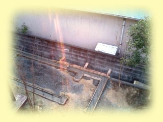 | 小屋の床部分に採石が敷かれています。 ああ…もうすぐコンクリート打ちなんだ! |