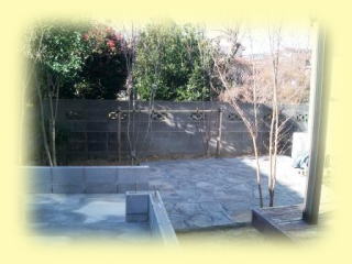 | 庭部分に鉄平石を貼りました。 随分イメージが変わった感じ… 予算の都合で全部は無理でした。 |