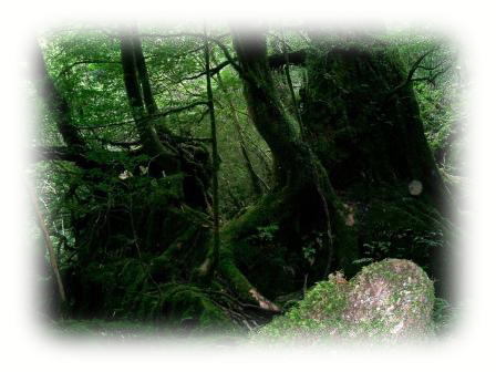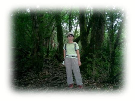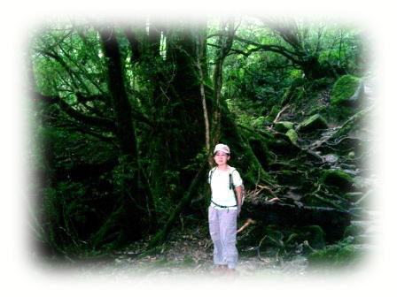 | ここがもののけの森…鬱蒼とした神秘の世界です | もののけの森をバックに… |