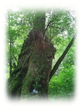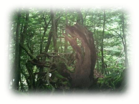 長い原始林コースをやっと抜けて、白谷小屋で休憩をとり、いよいよ「もののけの森」と対面です