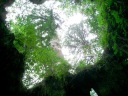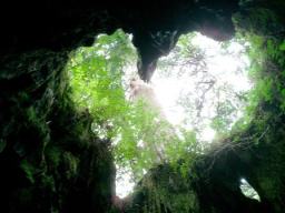 | 株の中に入って上を見上げると美しい森の景色が見えます アングルによって…こんなハート型に空が抜けて見えるんです このアングルはガイドさんから教えて頂きました 静寂で神秘的な空間です |