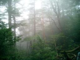 | 雨にけぶる森は幻想的です でも… どうかこれ以上雨がひどくなりませんように…と祈りました |