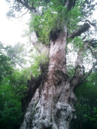 | もうすぐ縄文杉…という手前で出会うのが「大王杉」 約5mほどの落差のある急斜面に根を這わせたその木は 迫力満点!推定樹齢3000年だとか… 縄文杉が発見される前は屋久島のシンボルだったそう 縄文杉に出会う前にもう十分感動してしまっていた私です |