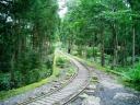 | 小杉谷集落後もトロッコ道はまだ3km弱続きます ここからは整備されたトロッコ道なので随分楽になりました これまでの道は枕木がまだらに組み込まれ ずっと下を向いて歩かねばなりませんでした |