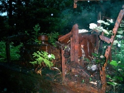 | 行きのトロッコ道でもう使われてなかったトロッコが 道ばたに朽ちて置かれていました 帰りに撮ろうと思っていたのに もう暗くなって雨にも打たれていました なにかこの姿には惹かれるものがあります |