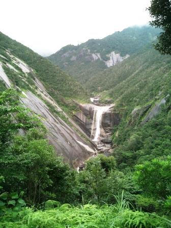 | 小雨が降っていました 駐車場から少し歩いたところに展望台があって ここから「千尋の滝」を望みます…遠くに見えるのもなかなかいい 雨が大量に降るとその姿は一変するのだとか… 車も2台ほどしか止まっていず静かです |