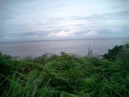 | 永田の海がやっと見えてきました 曇り空…13時からのダイビングの時間に間に合うかしら?と 気にしつつ車を停めて景色を画像に収めました |
