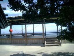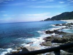 | デッキからの海…どことなく台風の影があるかな? でも青くって綺麗…この海がどんな風に荒れるんだろう |