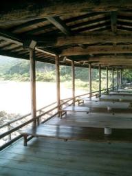 | 散歩を楽しんで、夕べ夕餉を楽しんだデッキに戻ってきました 朝の風景は全然イメージが違います ここでの朝食の時、宿のおかみさんといろいろ話しました 「本当は一人旅は断っているのよ」と聞いてびっくり! 「ひとりでもいいですか?」の問に少し返事が遅かったことに納得 |